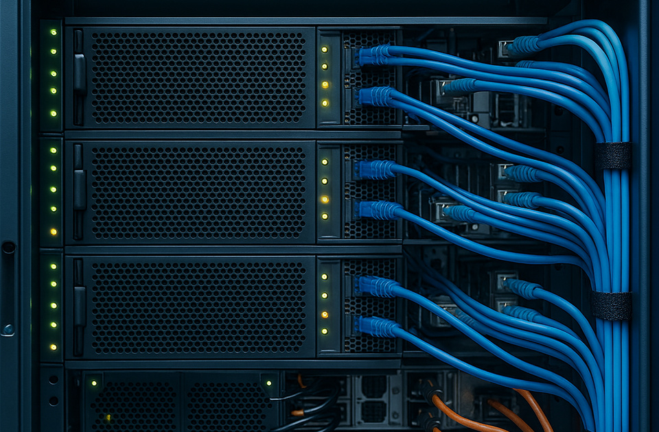 In einem Rechenzentrum stehen tausende Server nicht lose im Raum, sondern sind in sogenannten Racks untergebracht; stabilen Metallschränken, in denen die Geräte platzsparend und strukturiert übereinander angeordnet sind. Jedes Rack beherbergt mehrere leistungsstarke Rechen- und Speichermodule und bildet damit eine wichtige Einheit der gesamten IT-Infrastruktur.