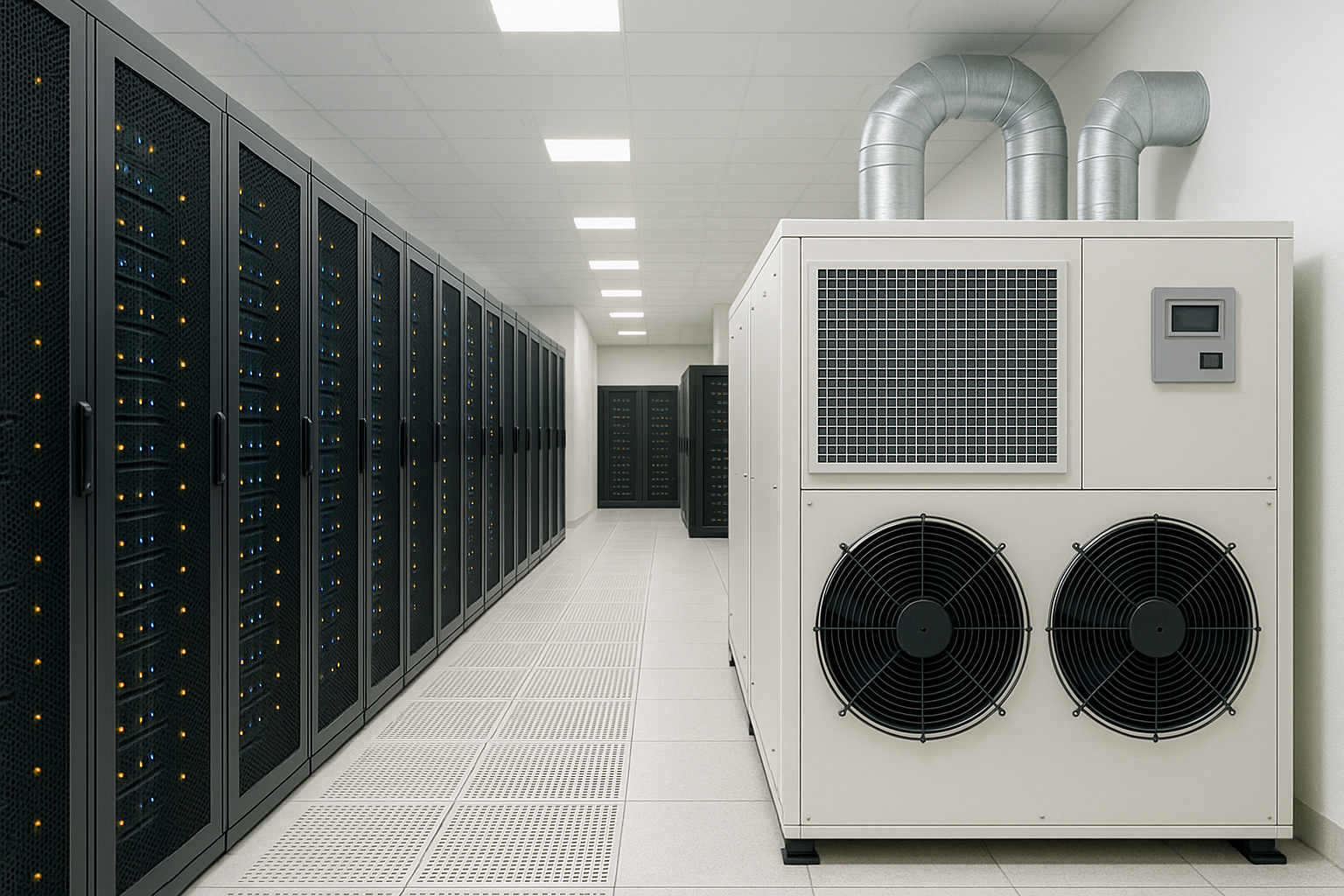 In einem luftgekühlten Rechenzentrum muss die Kühlung zuverlässig sicherstellen, dass die dicht gestapelten Server nicht überhitzen. Nahezu die gesamte elektrische Leistung eines Rechenzentrums wird in Wärme umgewandelt. Ein modernes Rechenzentrum gibt annähernd 100 % der IT-Leistung als Abwärme an die Umgebung ab. Das bedeutet: Aus beispielsweise 40 MW IT-Leistung entstehen rund 40 MW Wärme, die kontinuierlich und kontrolliert abgeführt werden müssen.